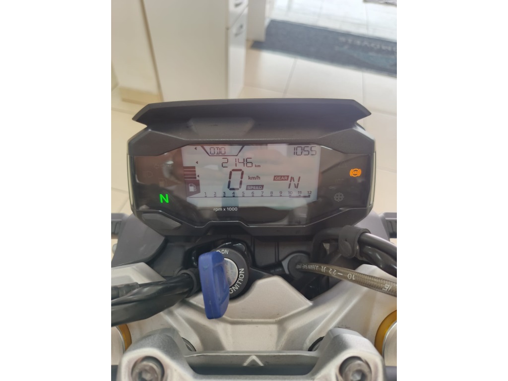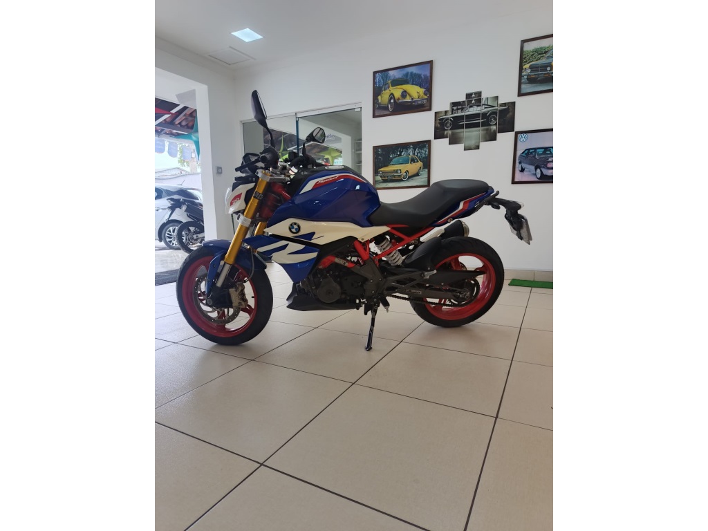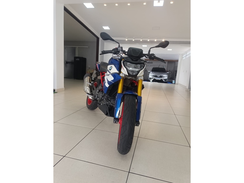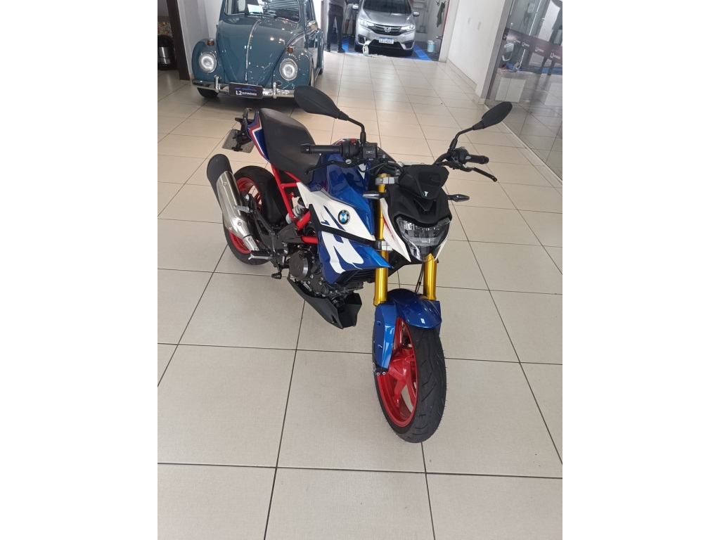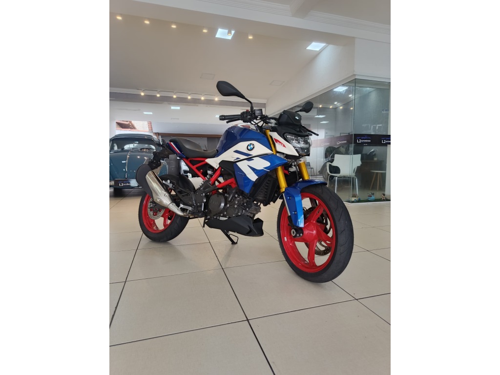 BMW G310 R 2024 LEVE, ÁGIL E ESPORTIVA Equipada com um motor monocilíndrico a quatro tempos de refrigeração líquida de 313 cc, a G 310 R 2024 oferece 34 cv de potência a 9.250 rpm e torque máximo de 2,8 kgf.m a 7.250 rpm. Seu motor inovador apresenta uma inclinação para trás que reduz o centro de gravidade, proporcionando uma condução mais segura e ágil.Destaques da G 310 R 2024 incluem um garfo telescópico invertido anodizado dourado, rodas de alumínio fundido, novos pisca e farol de LED, design dinâmico do tanque de combustível e um sistema de escape em aço inoxidável. A configuração ergonômica do guidão, pedaleiras e comandos garantem uma experiência de pilotagem autêntica da BMW.Com a G 310 R 2024, percorrer as ruas da cidade é uma experiência descontraída e segura. Seja serpentenando pelo trânsito ou explorando fora da cidade, esta moto oferece confiança e agilidade. As alturas do banco são adequadas a diferentes estaturas, e o sistema de freios potente com ABS de série proporciona frenagens eficientes.Além disso, a BMW G 310 R 2024 vem com equipamentos de série como ajuste de pré-carga do amortecedor traseiro, assento em peça única, farol dianteiro em LED, indicadores de direção em LED, painel de instrumentos digital e muito mais.