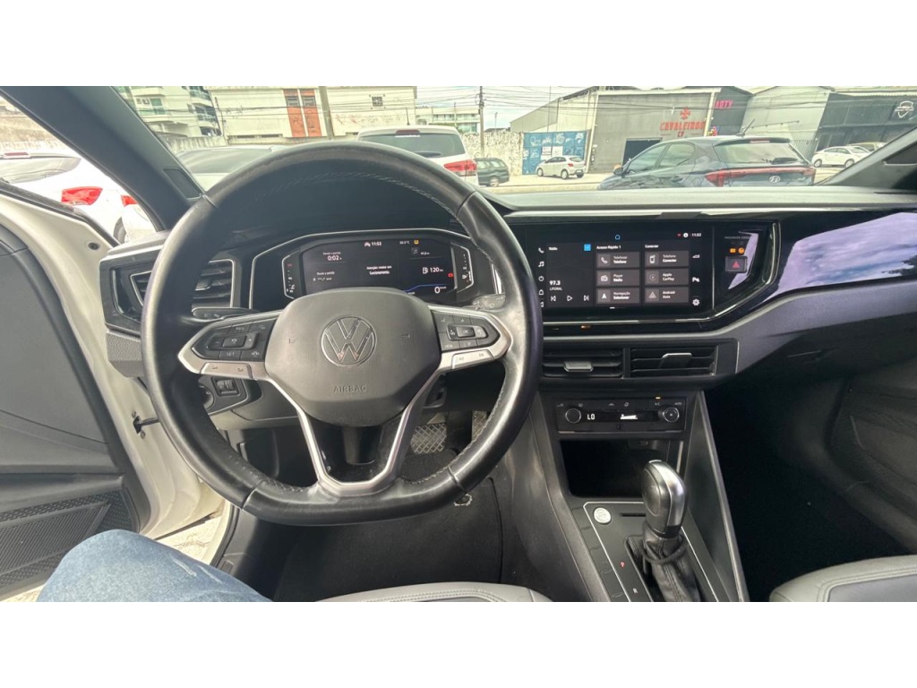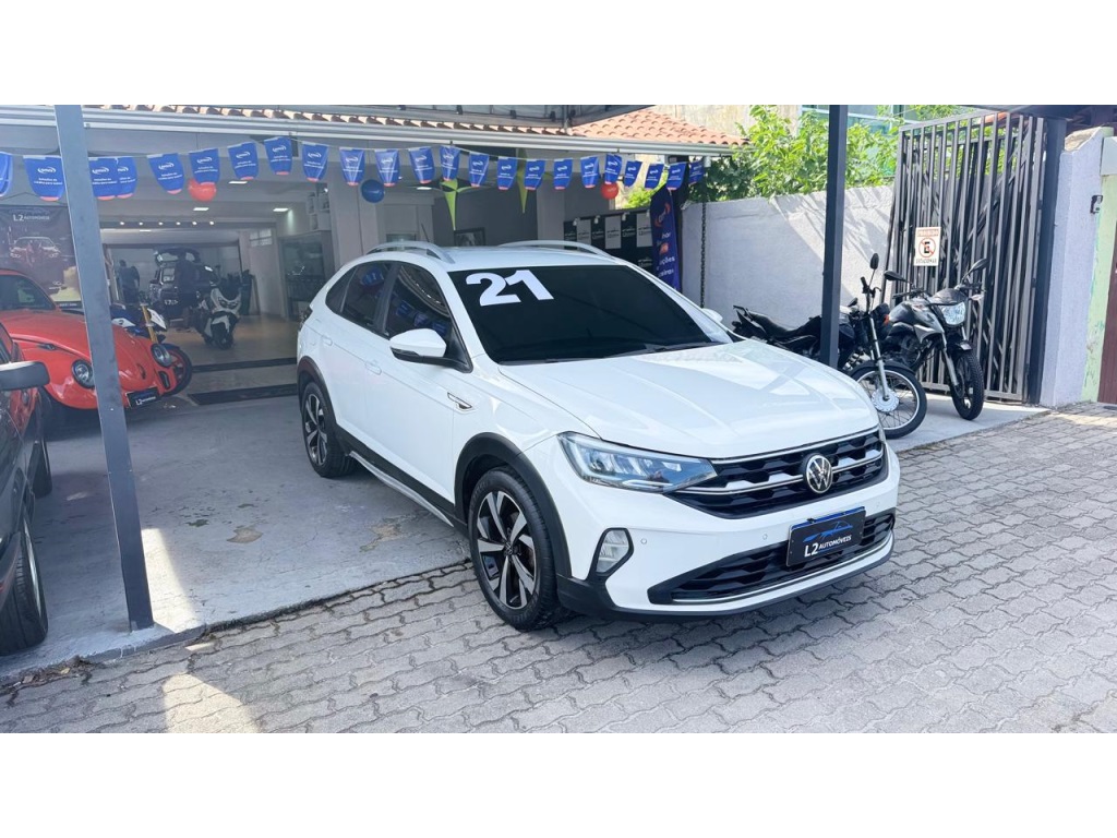 Volkswagen Nivus Highline 1.0 200 TSI Flex AUT 2021-Motor 1.0 Turbo 200 TSI-Câmbio automático de 6 marchas-Rodas de liga leve aro 17-Painel 100% digital (Active Info Display)-Central multimídia VW Play 10" com Android Auto/Apple CarPlay-Volante multifuncional com ajuste de altura/profundidade-Ar-condicionado digital automático-Bancos em couro-Faróis full LED-Assistente de partida em rampa-Sensor de estacionamento dianteiro e traseiro-Câmera de ré-ISOFIX